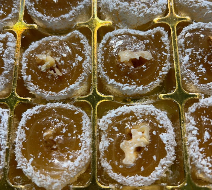 • Doku: Yumuşak lokum + Hindistan cevizi kaplama + ceviz parçaları