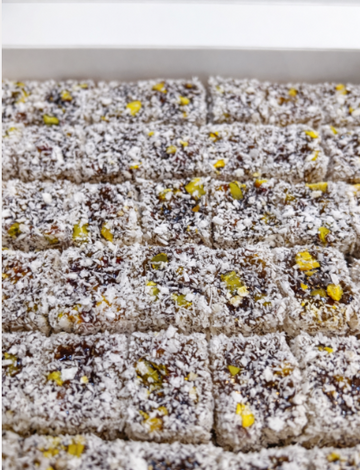 Bu özel lokum, lezzetini çifte kavrulmuş Antep fıstığından alır: kavrulmanın verdiği derin aroma lokumun içinden gelirken, dış yüzeydeki Hindistan cevizi kaplama hem görüntüyü güzelleştirir hem de ağızda yumuşak bir bitiş sağlar.