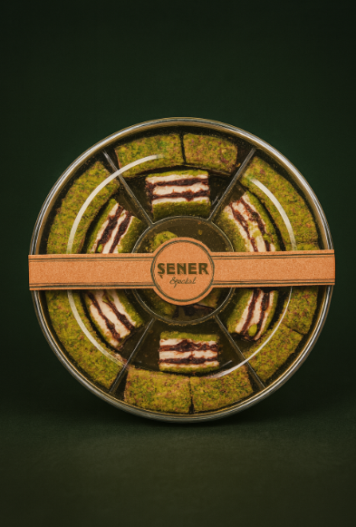 250 gr Antep Fıstıklı Pralinli Baklava Dilim Yuvarlak Kutu