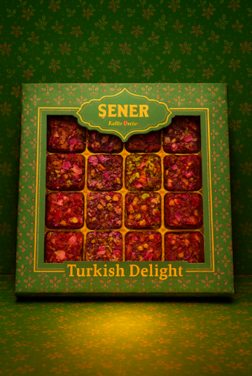 350 gr Antep Fıstıklı Gül Yaprak Kaplı Narlı, Zereş Üzümlü Fıstıklı Narlı Lokum