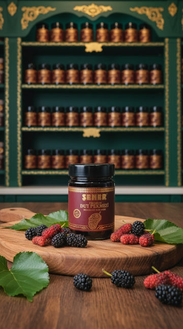 Dut pekmezi, dutun kendine has aromasıyla öne çıkan; yoğun kıvamlı, tok lezzetli ve kahvaltılara çok yakışan klasik bir pekmez çeşididir. Tadındaki doğal meyve karakteri sayesinde “yormayan” bir tatlılık sunar. ŞENER Special seçkimizdeki dut pekmezi; dolgun aroma, dengeli kıvam ve çok yönlü kullanım avantajıyla kahvaltıdan ara öğüne, tatlılardan içeceklere kadar her alanda keyifle tüketilir.