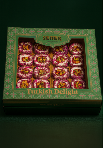 350 gr Antep Fıstıklı Gül Yaprak Kaplamalı Narlı Lokum Hediyelik