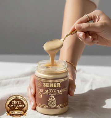 Şener Special Yerli Premium Çifte Susam Tahini, Türkiye’de yetiştirilen özenle seçilmiş yerli susamların çift kavurma yöntemiyle işlenmesi sonucu elde edilen, yoğun aroması ve zengin lezzetiyle öne çıkan özel bir tahindir. Çifte kavurma sayesinde susamın doğal yağı ve karakteristik tadı daha belirgin hâle gelir, tahine güçlü ve tok bir aroma kazandırır.