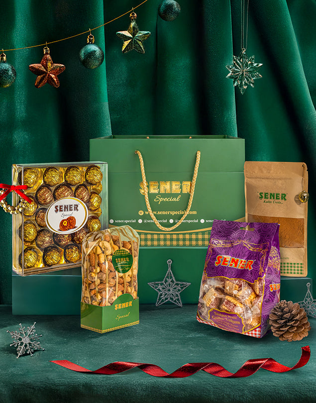 Özenle seçilmiş ürünlerle hazırlanan bu özel paket, sevdiklerinize hem şıklık hem de tatlı bir mutluluk sunar.